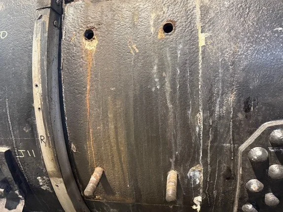 In next photo, notice the water marks coming from the top two holes for the compressor bracket. Those two holes were the ones that had straight bolts put in them. Compare those to the 1912 original Baldwin studs below them, that are not leaking. This should be a pretty easy fix, the studs are the same as the mud ring studs (7/8” 3/4” per foot taper, 12 threads per inch to a 7/8-9 outside thread).