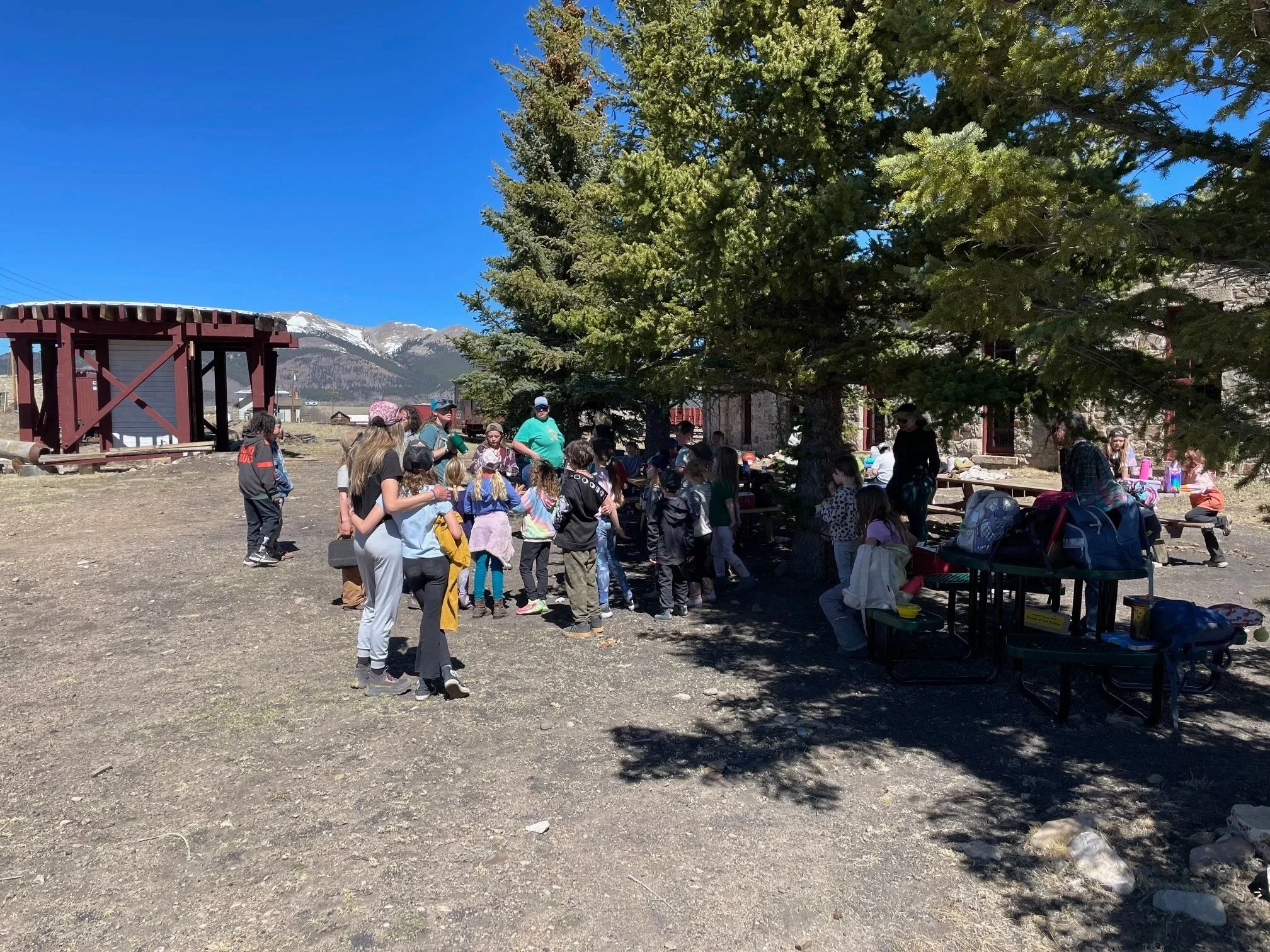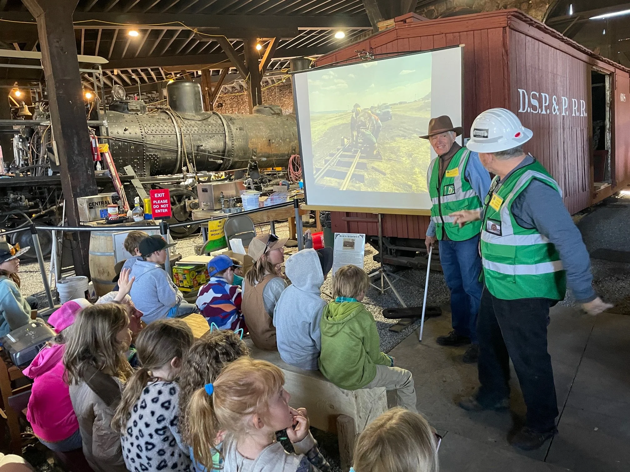 On March 25, 2026 our volunteers hosted 50 students, teachers, and chaperones from High Rockies Community School in Fairplay. It was a beautiful warm day - perfect for being outdoors. The Roundhouse had also warmed up to what was likely a new high for a March day. We did light the stoves for effect though! Read on for an overview and recap of our efforts to support the Como mission of education of the railroad history of the Como Railroad Heritage Site.